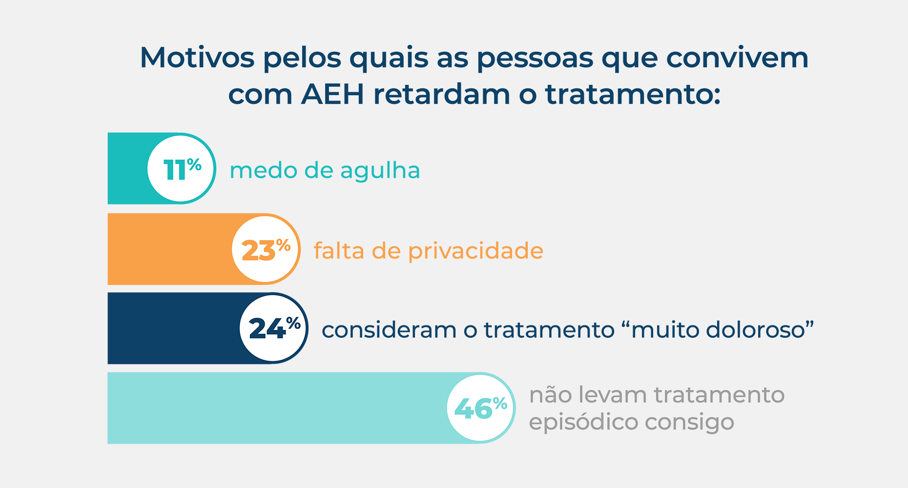 Há ocasiões em que as pessoas que convivem com AEH retardam o tratamento ou decidem não tratar uma crise de AEH. A Pesquisa de jornada de crises de AEH revelou que muitas pessoas que convivem com AEH acham difícil levar o tratamento episódico consigo e enfrentam a ansiedade de tratar ou não ao identificarem uma crise. Falta de privacidade necessária para administrar o medicamento, preferindo tratar em casa e medo de injeção ou dor causada pela medicação são 3 dos motivos mais comuns para adiar o tratamento.